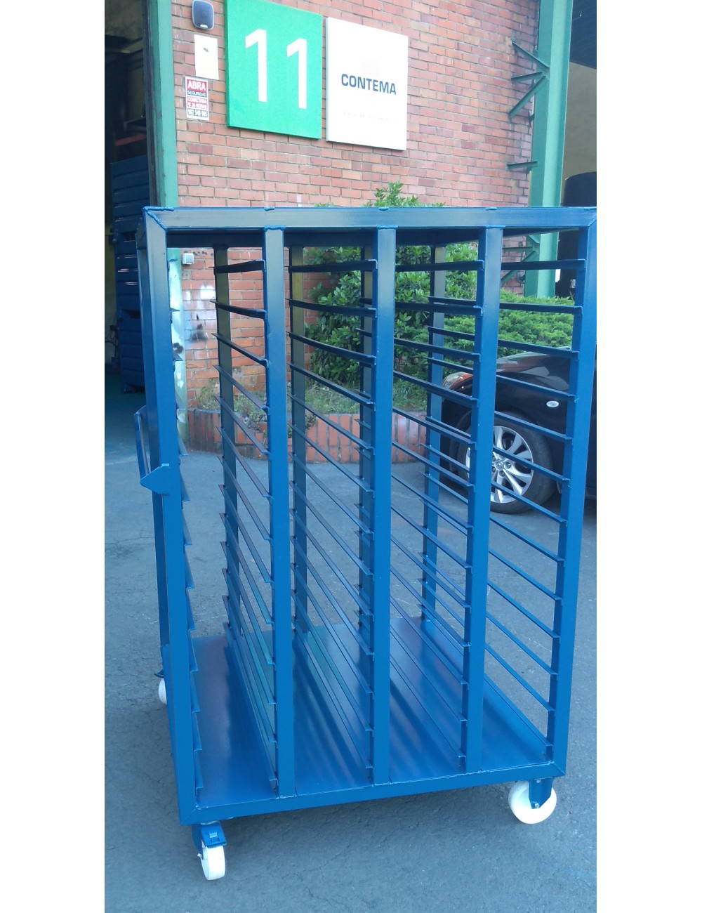 Estructura metálica con ruedas y freno especial para el transporte de piezas separadas